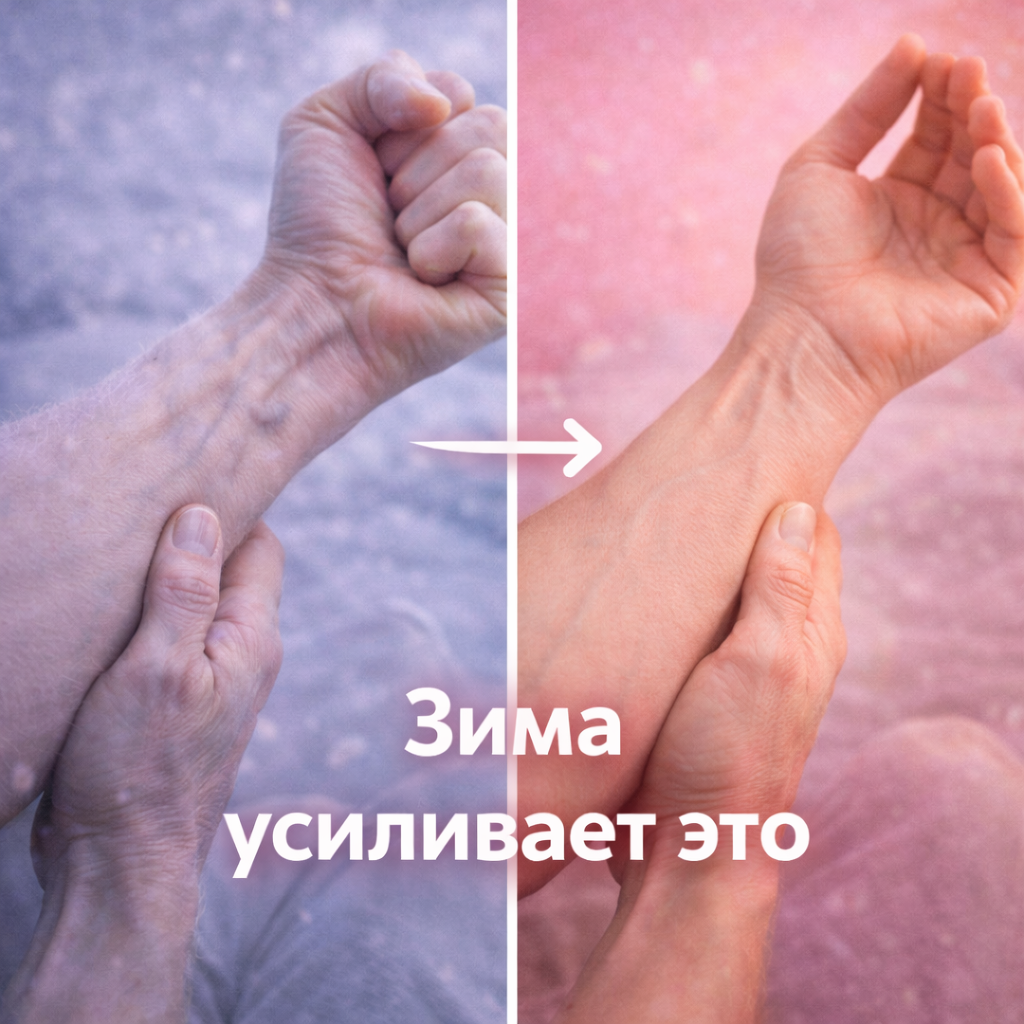 — Раньше не болело, а теперь тянет мышцы даже после сна. И самое интересное — большинство людей уверены: это возраст. Или «погода». Или «так у всех зимой». Но как врач я точно знаю: дело не только в холоде. Зима не создаёт проблему с нуля. Она лишь усиливает то, что уже было в организме, но оставалось незаметным. Зимой организм живёт в режиме экономии. Он старается сохранить тепло, энергию, ресурсы. Кровообращение замедляется, сосуды сужаются, мышцы чаще находятся в напряжении. Если летом тело справляется за счёт движения и тепла, то зимой слабые места начинают «звучать» громче. Суставы и мышцы — первые, кто реагирует. Сустав — это не просто «шарнир». Это сложная система из хряща, связок, суставной жидкости и мышц вокруг. Когда холодно: В итоге движение становится мен