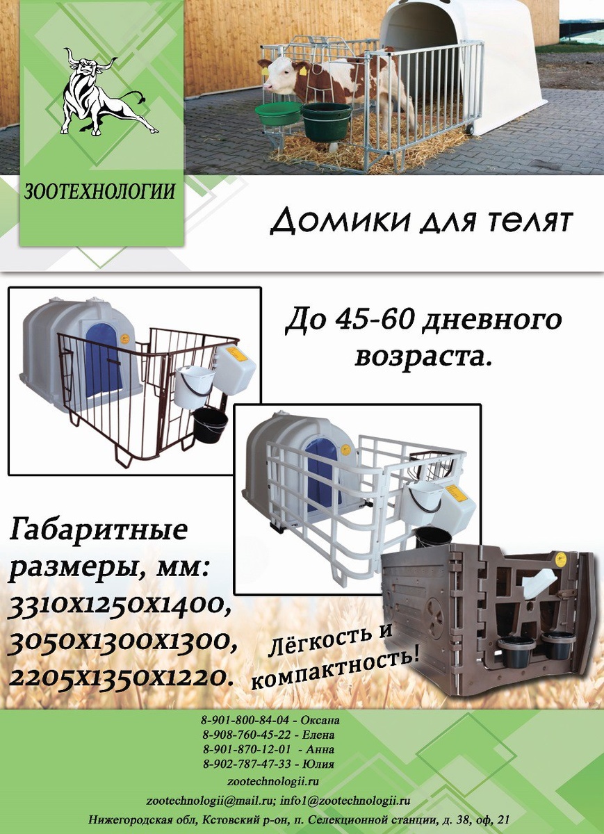 🐄 В продаже домики для телят, которые предназначены для индивидуального содержания телят в помещении или на открытом воздухе. Некоторые цели использования таких домиков: ➡️Обеспечение комфортных условий. Телята могут находиться на свежем воздухе, но при этом укрываться от ветра и непогоды. ➡️Изоляция от источников инфекции. Содержание в боксах способствует повышению иммунитета животных. ➡️Создание особых условий кормления. Можно соблюдать нужную технологию кормления в зависимости от индивидуального развития телёнка. ➡️Защита от болезней. Система вентиляции в боксах обеспечивает циркуляцию воздуха, предотвращая скопление влаги, развитие инфекций и болезней. ➡️Защита от сквозняков. Конструкция домиков препятствует образованию сквозняков, что снижает уровень заболеваемости телят. Получить подробную консультацию и оставить заявку можно у наших менеджеров: Оксана: 8-901-800-84-04 Елена : 8-908-760-45-22 Анна: 8-901-870-12