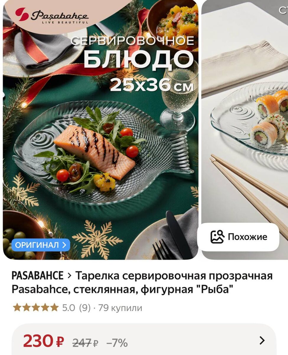 Тарелка сервировочная прозрачная Pasabahce, стеклянная, фигурная "Рыба"