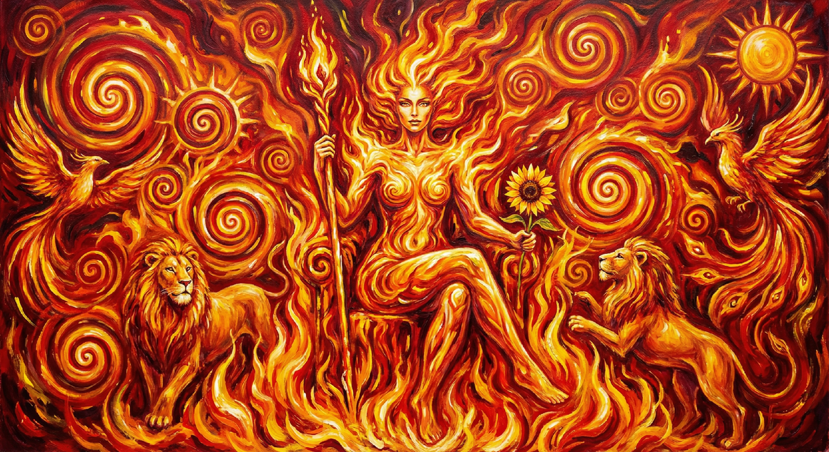 Королева Жезлов / Королева Огня - архетип зрелого огня: уверенной, тёплой, живой силы, которая не прячется и не извиняется за своё существование.