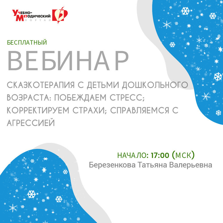 Вебинар «Сказкотерапия с детьми дошкольного возраста: побеждаем стресс; корректируем страхи; справляемся с агрессией