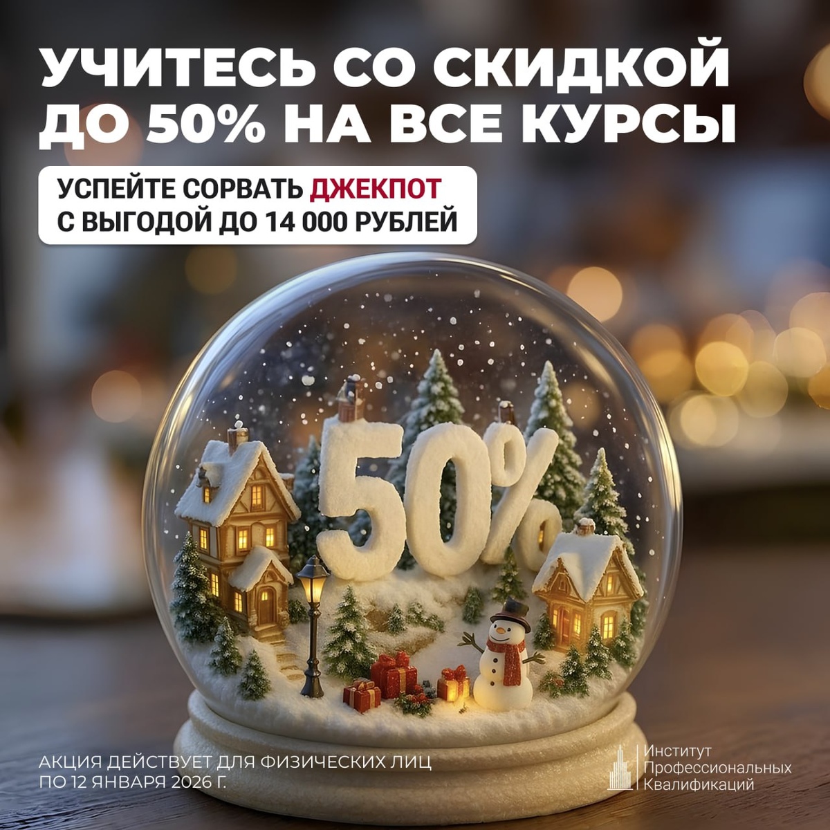 ! ❄️Начало года — лучшее время для подведения итогов и для выгодных инвестиций в свое развитие! А для компаний до конца праздников — особые условия, чтобы обучить команду с максимальной выгодой. ⭐️МЕЧТАЛИ О СМЕНЕ ПРОФЕССИИ ДЛЯ СЕБЯ или получении новых навыков? Сейчас — идеальный момент! ✅До 12 января 2026 года дарим СКИДКУ до 50% на ВСЕ курсы для физических лиц. ✅ Джекпот с выгодой до 14000 рублей — подробности уточняйте у менеджеров. 🔥 Успейте выбрать курс, зафиксировать цену по суперпредложению и получить гарантированные подарки 👉https://clck.ru/3QwvER ✨ДЛЯ БИЗНЕСА, КОТОРЫЙ РАСТЁТ ВМЕСТЕ С КОМАНДОЙ Повышайте квалификацию сотрудников и оптимизируйте бюджет на обучение до конца года! ✅ Акция для юрлиц: «1+1=3». При покупке двух любых курсов — третий вы получаете в подарок! 🎯 Успейте сделать рывок в профессиональном развитии до конца года! Обучите вашу команду комплексно по смежным направлениям. Акция действует До 12 января 2026 года. 💚Забронировать скидку на курс и получить
