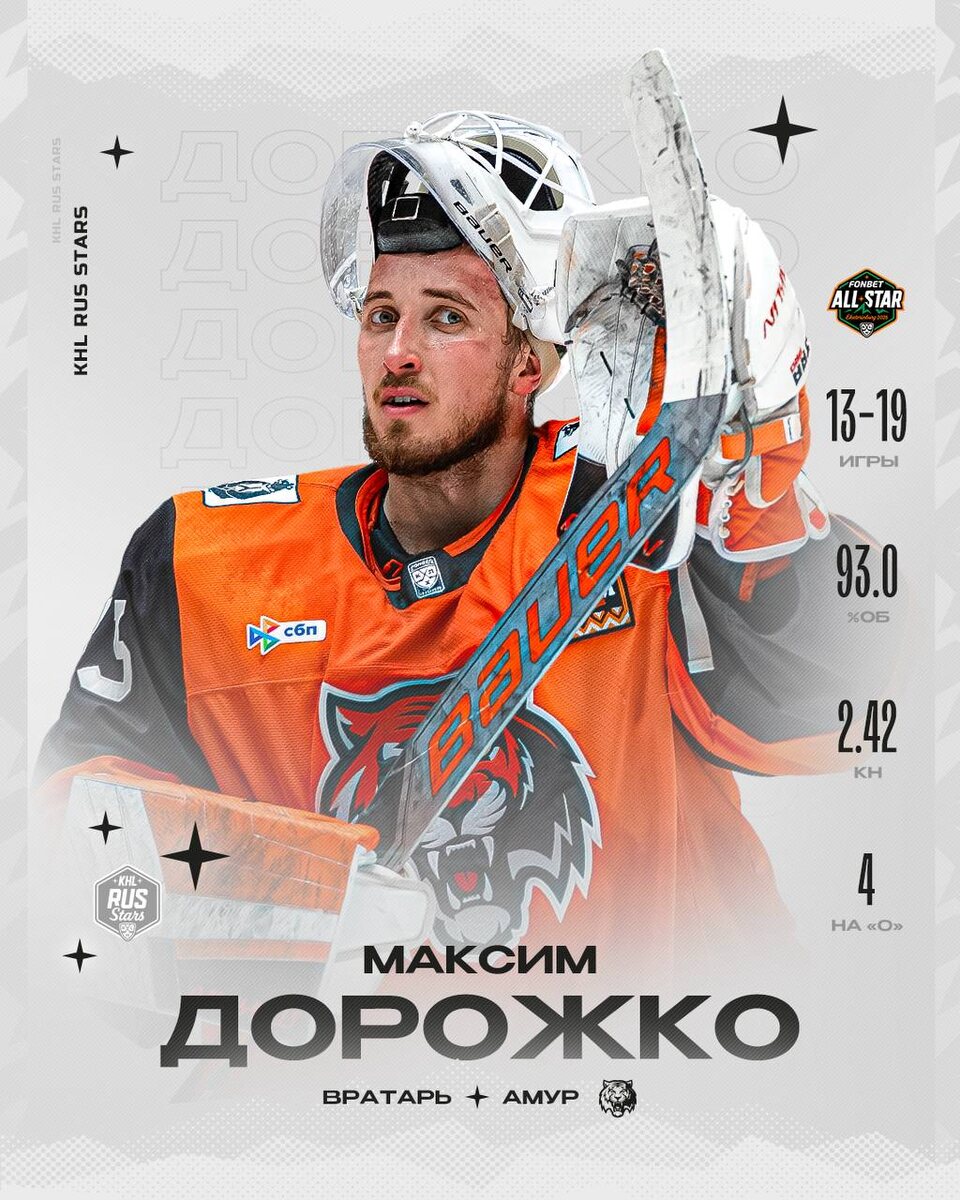 Стабильно надёжный Максим Дорожко 🐯 отправится на Фонбет Матч Звёзд КХЛ в третий раз в своей карьере