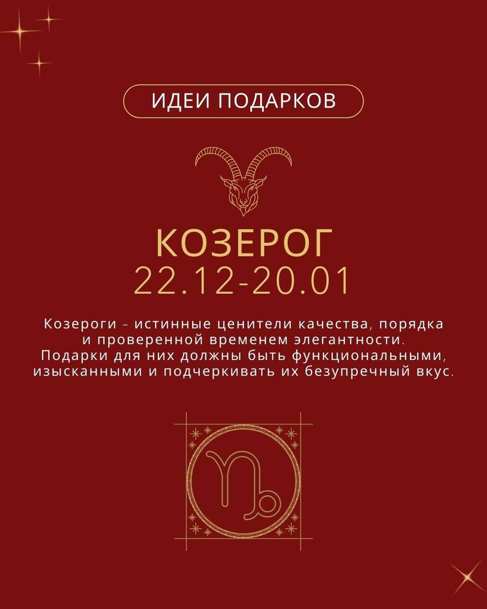 !✨ Мы собрали вдохновляющие идеи подарков для изысканных козерогов, самобытных водолеев и мечтательных рыб. Если вы пропустили первые части наших подборок по знакам зодиака, загляните по ссылкам ниже, чтобы найти идеальный подарок для каждого: 🌟 Подарки для овнов, тельцов и близнецов 🌟 Подарки для раков, львов и дев 🌟 Подарки для весов, скорпионов и стрельцов