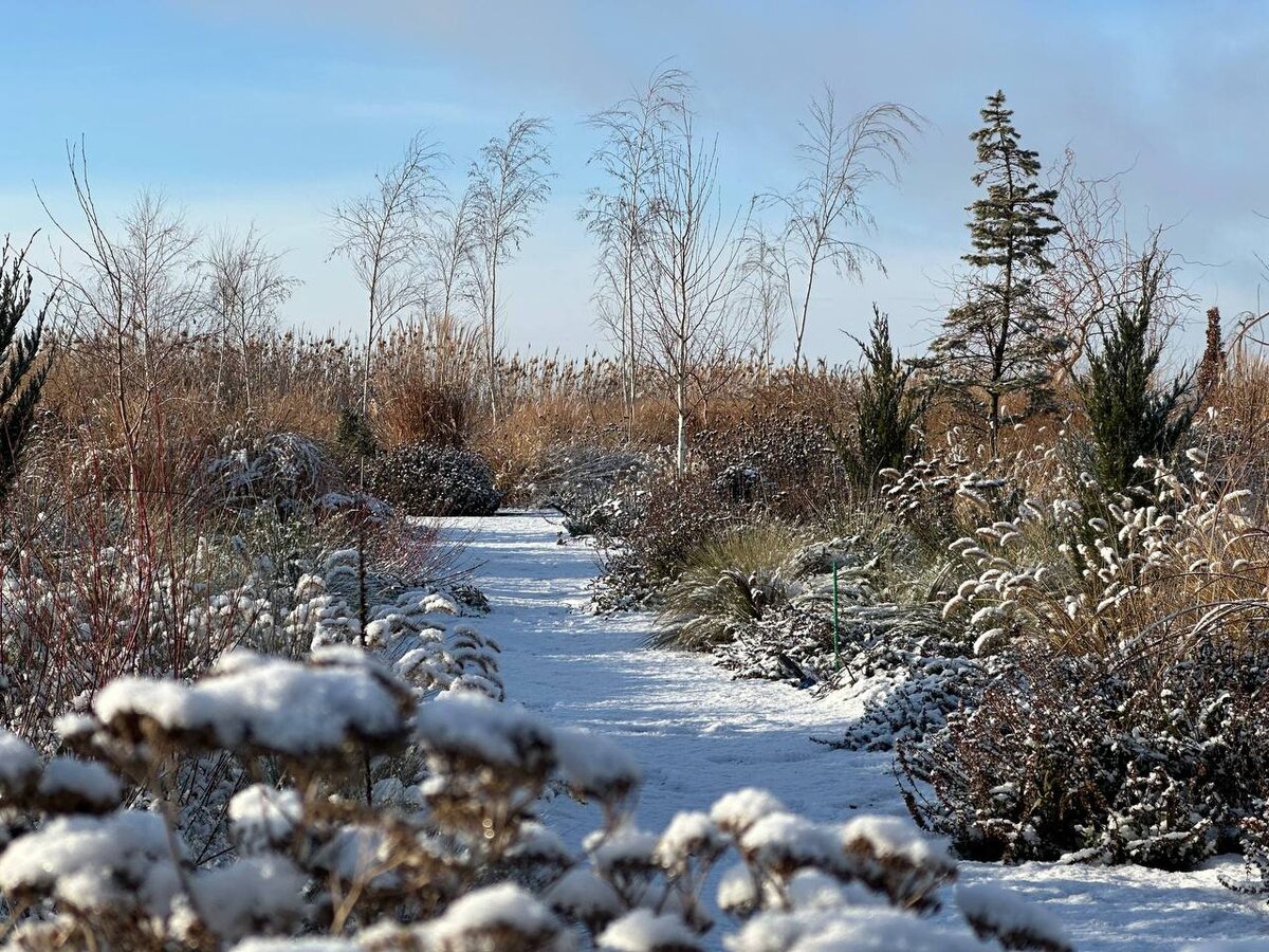 🤍 Снежная тропинка, злаки и многолетники с белыми шапками на соцветиях, тонкие берёзы и тёмная графика хвойных. Сад не пустует даже зимой — он живёт формой, фактурой и светом. Зимний сад наглядно показывает: правильно подобранные растения декоративны круглый год.