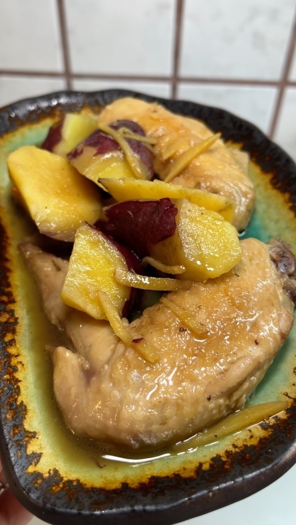Соевый соус - 1 ст.л. Приготовление: 1. Батат нарезать на небольшие кусочки. 2. Свежий имбирь нарезать соломкой. 3. Обжарить крылья на растительном масле до золотистости. 4. Добавить батат и готовить ещё 5 минут. 5. Добавить ингредиенты для соуса и перемешать. 6. Тушить под крышкой на медленном огне 15 минут. Получается вкусно! Ещё больше о том, что едят в Японии на моей странице.