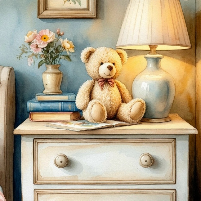 Девочка, милое создание со светлыми кудряшками, очень любила свои мягкие игрушки. Был здесь и желтый утконос, и разноцветные круглые мышки, и ежик с мягкими иголками, и маленький шпиц. Но больше всех девочка любила небольшого бежевого медвежонка. Медвежонок был не просто игрушкой, он был другом. Ему девочка рассказывала о том, что с ней происходило в детском саду, пела ему песенки и рассказывала сказки. Шла ли девочка в детский сад или сопровождала маму в магазин - всюду она носила медвежонка с собой. Перед сном девочка целовала медвежонка и ставила его на комод, чтобы медвежонок был рядом и охранял ее безмятежный сон. Когда девочка просыпалась, она брала медвежонка за лапу и прибегала в комнату к родителям. Потом шла завтракать, и делилась едой со своим другом.