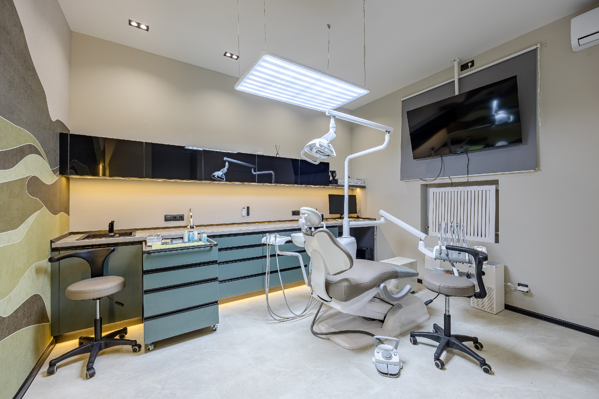 Свет, который лечит: Комбинация естественного освещения, равномерного общего и точечного акцентного света создает ощущение открытости и безопасности. Особое внимание — к зоне кресла: свет должен быть достаточно ярким для работы врача, но не слепить пациента.