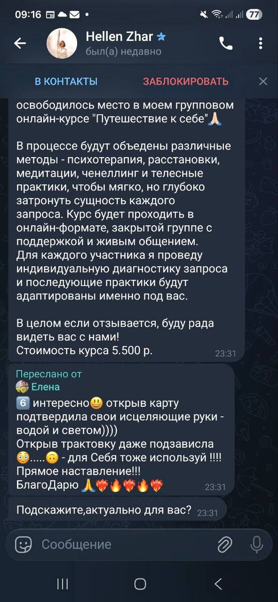 Пожалуйста, будьте осторожны и внимательны Это наши официальные аккаунты поддержки🧚♀️ @IT_of_Hellen_Zhar @help_of_Hellen_Zhar ❗Тут САЙТ, оплата всех практик происходит только там Не верьте другим аккаунтам, которые предлагают купить вам медитации, курсы, личную работу и другие продукты💜