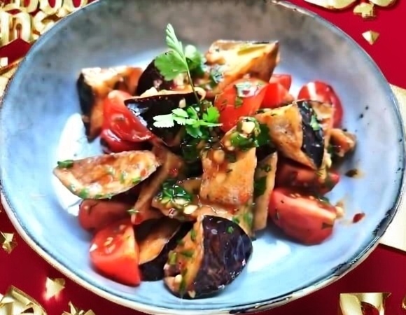 Этот салат поразит вас своим ярким вкусом и неповторимым сочетанием ингредиентов. Хрустящие баклажаны, сочные помидоры черри и пикантный соус создадут гастрономическое удовольствие, которое запомнится надолго. Давайте окунёмся в мир вкусов и ароматов!