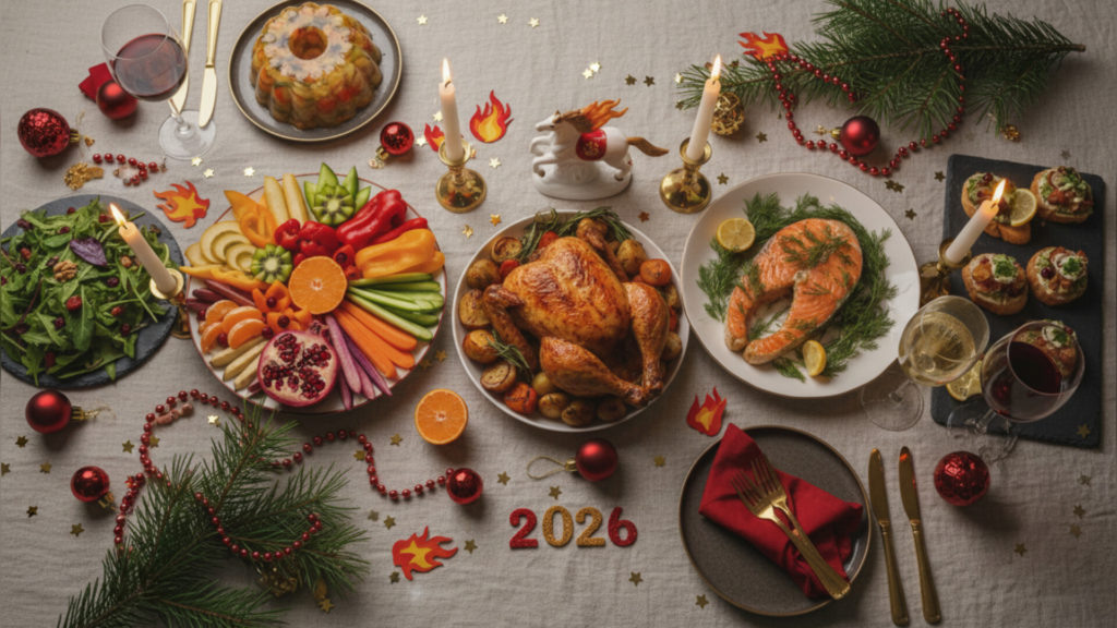 Как известно будущий 2026-й — год Огненной Лошади. А что она предпочитает? Натуральность, яркость, порядок и естественность. Поэтому при планировании меню на Новый год 2026 года отдайте предпочтение легким блюдам, зеленым салатам, фруктовым и овощным нарезкам.
