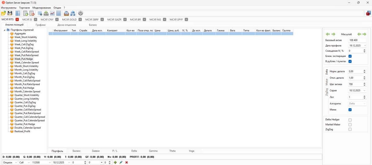 Выпущена новая версия программы. - доработан интерфейс переключения между инструментами, теперь он выглядит в виде вкладок, а не в виде выпадающего списка, что стало намного удобней. - реализована функция снятия активной заявки по позиции, из таблицы опционной конструкции. - внесен ряд других доработок в программу для улучшения ее работы Те, кто уже пользуется программой, могут скачать обновление по следующей ссылке и из скачанного архива обновить у себя именно файл программы OptionServer.exe https://quantpro.ru/downloads/OptionServer_7.1.5.7z Новые пользователи, желающие установить себе «Опционный модуль», пишите в Телеграм @vyacheslav_zam для получения дополнительной информации или можете задавать вопросы в комментариях к данному сообщению.