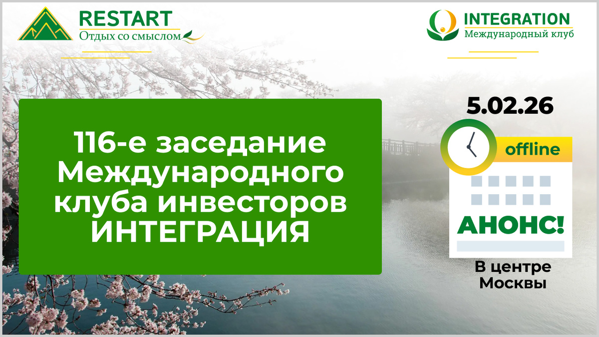 Друзья! 🎄 С Новым 2026-м Годом! Благополучия, процветания, радости вам и вашим близким каждый день нового года! ☃️2️⃣0️⃣2️⃣6️⃣☃️ Будем рады встрече с вами 5.2.26 на 116-е заседание клуба ИНТЕГРАЦИЯ, которое пройдет в центре Москвы в формате «RESTART: Отдых со смыслом»