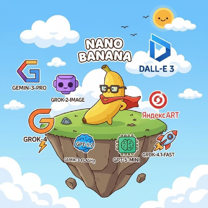 🤫 "Пост-продолжение" 🤫 - главное, о чем мы не сказали… Друзья, продолжаем раскрывать детали нашего большого обновления. Мы рассказали про новые выгодные тарифы, а сегодня — о самом важном изменении в ценах. 🔥 Во-первых, мы радикально снизили стоимость на все текстовые модели — на 50-90%! Это не акция, а наша новая реальность. Мы хотим, чтобы работа с текстом была максимально доступной. На практике это значит, что ваш баланс теперь будет тратиться в разы медленнее, а пользы приносить — больше. ⚡️ Во-вторых, наш инструмент для генерации изображений “вырос”! Многие из вас помнят, что раньше генерация картинок была экспериментальной функцией с парой моделей и низкой ценой без гарантии качества и удобства дальнейшего использования. Это был тестовый режим, необходимый в первую очередь нам для того, чтобы сделать систему генерации совершенной. ➕За последнее время мы добавили много мощных моделей (DALL-E 3, YandexART, gemini-3-pro, grok-2-image, grok-4, gemini-3-flash, gpt-5.2, gpt-5-m