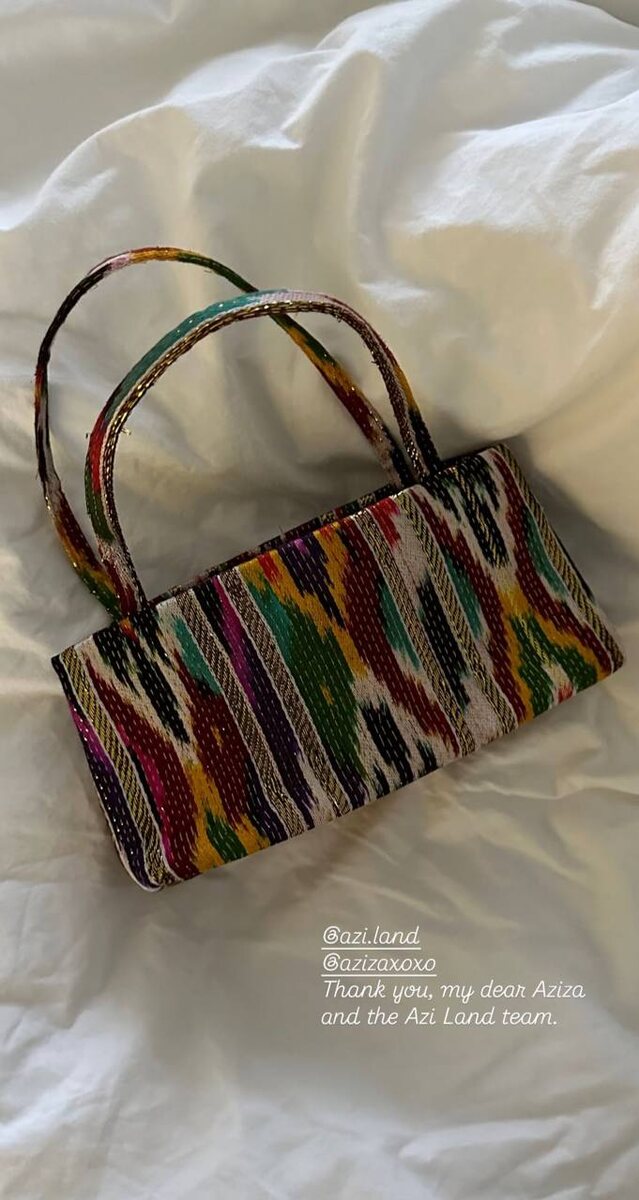 В вишлист сумку от локального бренда Azi land из ткани в технике икат. Модель называется Minoo, что переводе с персидского — «рай». Основательница бренда, Азиза Азим, родилась в Киргизии. А ее родители родом из Узбекистана и Казахстана. Отсюда в ДНК бренда отсылки к восточно-азиатской культуре и ремеслу.