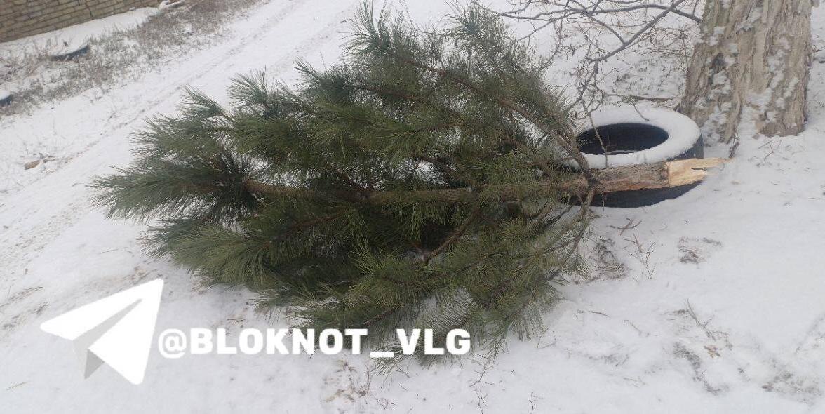 В Тракторозаводском районе на аллее возле бывшего кинотеатра «Ударник» неизвестные спилили дерево. Не исключено, то злоумышленники хотели отнести домой хвойную красавицу для создания новогодней атмосферы, однако не донесли её и оставили посреди улицы. Ещё один вариант — люди решили таким варварским способом позабавиться. В любом случае, их поступок разозлил волгоградцев.