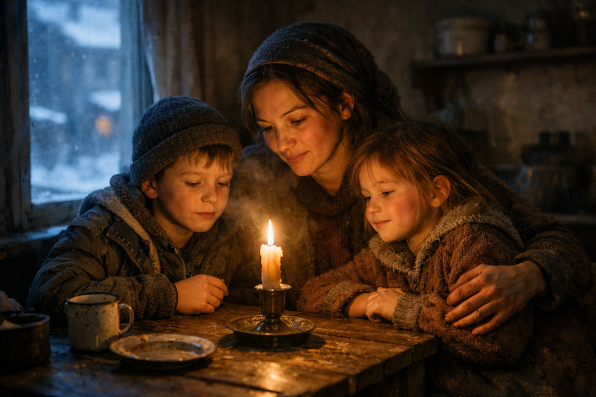 — У нас была только свеча. Больше ничего. Мама плакала. Мы голодные были.