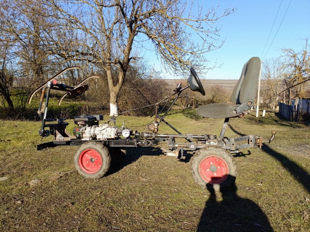 - Очень высокая вероятность опрокидывания. Это полноприводная конструкция не имеющая дифференциала с полной блокировкой, т.е. когда гребут все 4 колеса + переломка + качеля по горизонту. Это приводит к тому, что когда вы поворачиваете, зад будучи более тяжелым чем перед, ведь к весу самого адаптера вы добавили и себя любимого, он продолжает пихать вперед. В виду отсутствия дифференциала, оба задних колеса идут по прямой, а перед уже повернут и переднее колесо на внешнем диаметре становится в упор на первой же кочке и качеля способствует опрокидыванию. Особенно на этом попадаешься при развороте назад. Ты не смотришь вперед, тебе надо видеть, что у тебя сзади и ты упал.