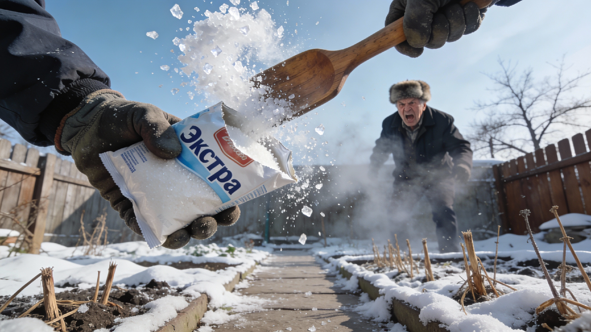 Зима. Гололед. Выходишь на крыльцо — и чувствуешь себя коровой на льду. Ноги разъезжаются, руки машут, тазобедренные суставы (ТБС) с ужасом ждут приземления. Первая мысль у любого нормального человека: «Солью посыпать!». Дешево, сердито, лед тает за минуту. Я, Фёдор Иванович, агроном-самоучка с большим стажем падений и дипломом «Академии собственных граблей», раньше тоже так делал. Брал пачку «Экстры» с кухни и щедро сеял её на дорожки, как художник. Лед исчезал. Я был доволен. А весной я не мог понять: почему у меня вдоль дорожек газон лысый? Почему любимая спирея засохла, хотя я её поливал? И почему земля там стала как камень? Глаза мне открыл мой сосед, дед Матвей. Увидев меня с пачкой соли, он чуть не выбил её из рук. — Ты что творишь?! — кричит. — Ты ж не огурцы солишь, ты землю убиваешь! Это ж засоление, смерть корням! И объяснил мне на пальцах (и с использованием непереводимого фольклора), почему обычная соль ($NaCl$) — это главный враг дачника зимой. Многие думают: «Ну растает
