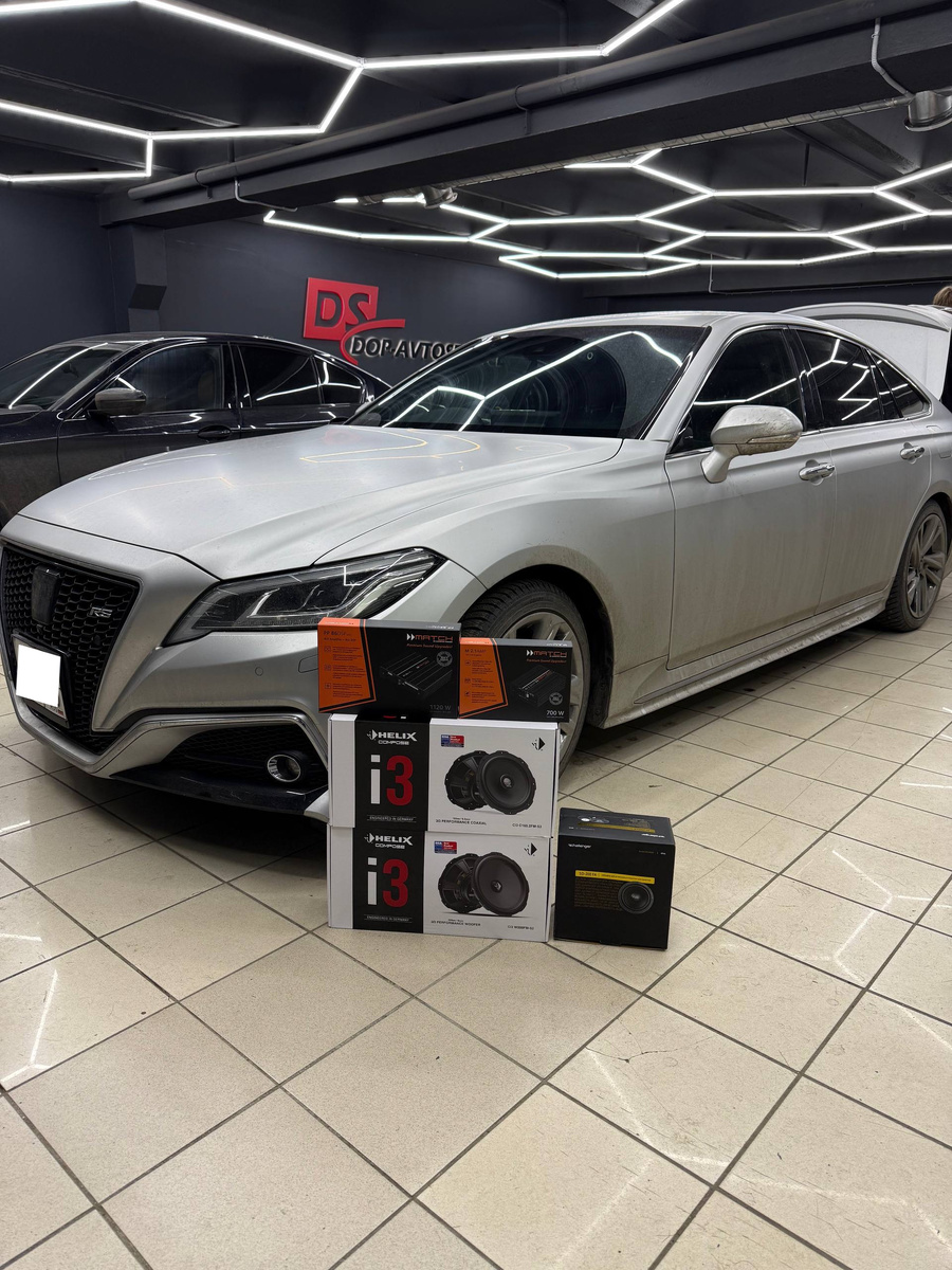 Владелец Toyota Crown уже обращался к нам ранее — мы выполнили шумоизоляцию дверей и арок, а также заменили штатный усилитель JBL на процессорный Match PP86DSP MK2. Результат ему понравился, но на этом он решил не останавливаться и сделать систему ещё более взрослой и музыкальной. В этот раз мы продолжили развитие аудиосистемы Toyota Crown и выполнили следующий этап апгрейда. Мы установили компоненты: — Helix Ci3 Compose W200-S2