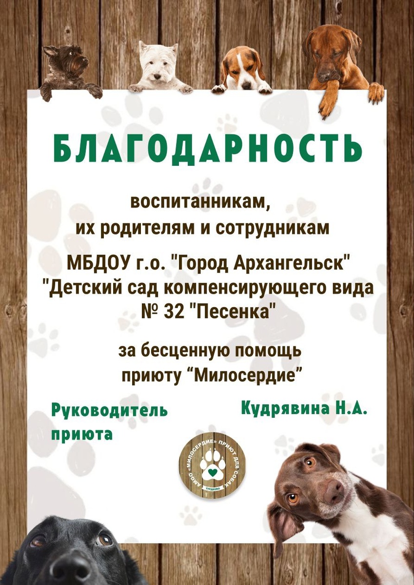 сотрудникам дошкольного учреждения за неоценимую предновогоднюю помощь нашему приюту "Милосердие"! В детском саду была организована благотворительная акция по сбору помощи для бездомных животных🐾🎁 https://vk.ru/wall-210989700_2641 Мы видим, как важно с ранних лет прививать детям чувство ответственности и умение делиться с теми, кто нуждается в нашей поддержке. Ваша акция – яркое тому подтверждение! Спасибо вам за вашу отзывчивость, щедрость и за то, что учите детей быть настоящими людьми!🙏❤️ ✨Отдельная благодарность за доставку в приют новогодних подарков нашему волонтёру Игорю Насонову 🚙