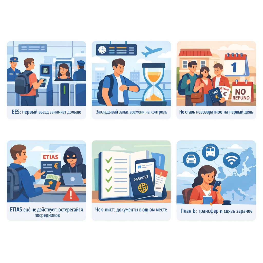 Факт: в разъяснениях для путешественников и у авиакомпаний фигурирует ориентир полной операционности к 10 апреля 2026. Почему это важно: переходный период часто выглядит как “то работает, то нет”, и именно на этом рождаются очереди. Факт: система касается не-граждан ЕС (third-country nationals), которые пересекают внешние границы стран Шенген-зоны/ассоциированных стран; речь идёт о коротких поездках.