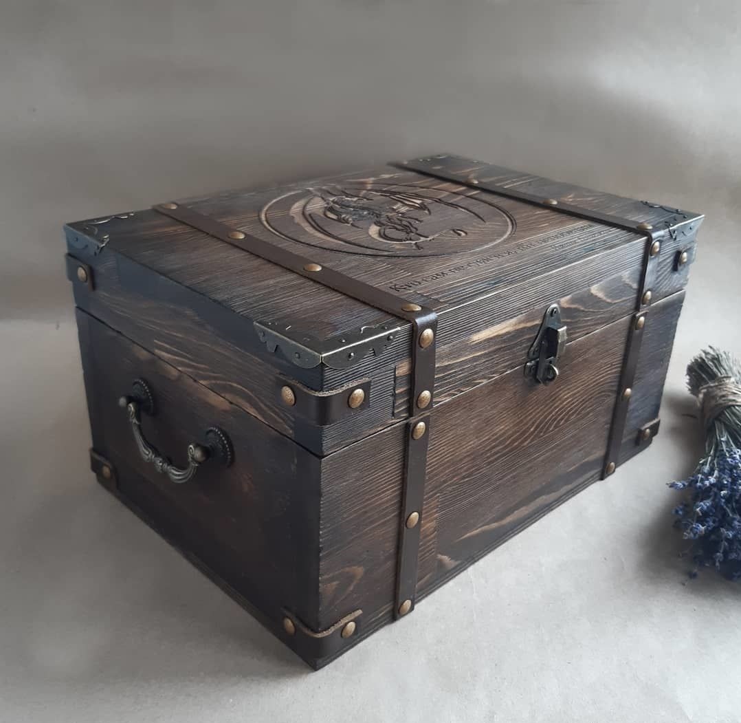 ✋ Короб: Сундук Русский Стиль под бокалы с гравировкой подарок мужчине 🎁 Сделана на заказ. Деревянная шкатулка с ложементом под коньячные бокалы необычной формы и гравировкой на верхней крышке. 🦅 Заказчица хотела сделать персонализированный подарок супругу - шкатулку для офиса с красивыми бокалами для коньяка и гравировкой.🥂 Рисунок гравировки повторяет тему ножки бокалов . Дерево, брашировка, воск, морилка, лак, ложемент, ткань, кожа, металлическая фурнитура. * Гравировка рассчитывается отдельно, в зависимости от размера и сложности. ✨ Цена: 17000 руб. Мастерская Nadin Sunduk - Оригинальные авторские Сундуки ручной работы. https://handmade-ok.ru/nadin-sunduk Спасибо за лайк! 👍 ☀️ Бесплатная платформа: https://handmade-ok.ru Telegram канал: https://dzen.ru/id/686524bd6777d3671ae96e2a Чат: https://t.me/handmade_okru Присоединяйтесь и делитесь ссылками! Всем Успехов! Благодарю!
