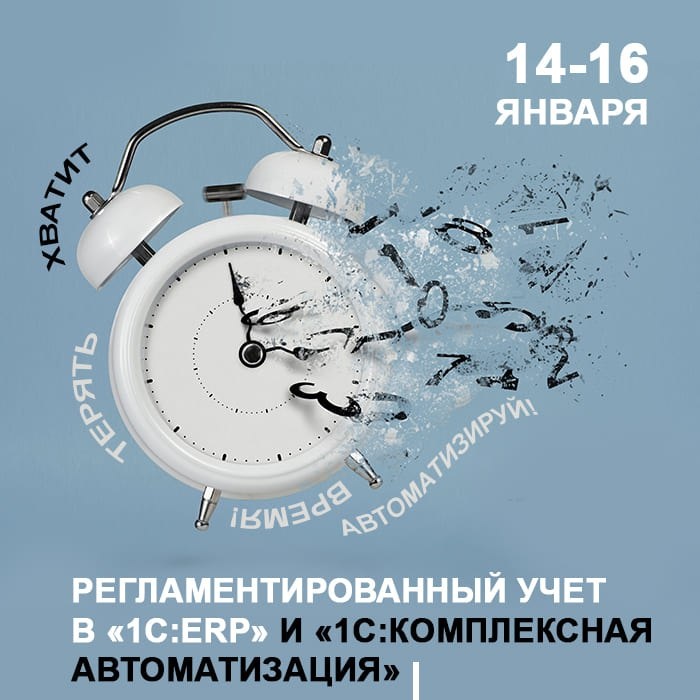 »! ‼️ Устали от ручного формирования проводок и заполнения отчетов в 1С? Знакомы с бесконечными проверками и риском ошибок? 💡 Пройдите практический курс «Регламентированный учет в прикладном решении «1С:ERP» и «1С:Комплексная автоматизация». 😱 70% времени курса — практика! По окончанию обучения выдаем удостоверение о повышении квалификации. Только для очного формата: методические материалы курса в ПЕЧАТНОМ виде, БЕСПЛАТНОЕ тестирование 1С:Профессионал в последний день курса. 14-16 января | 10:00-17:00 Очно (Москва, Дмитровское ш., 9) | Онлайн Подробнее и записаться