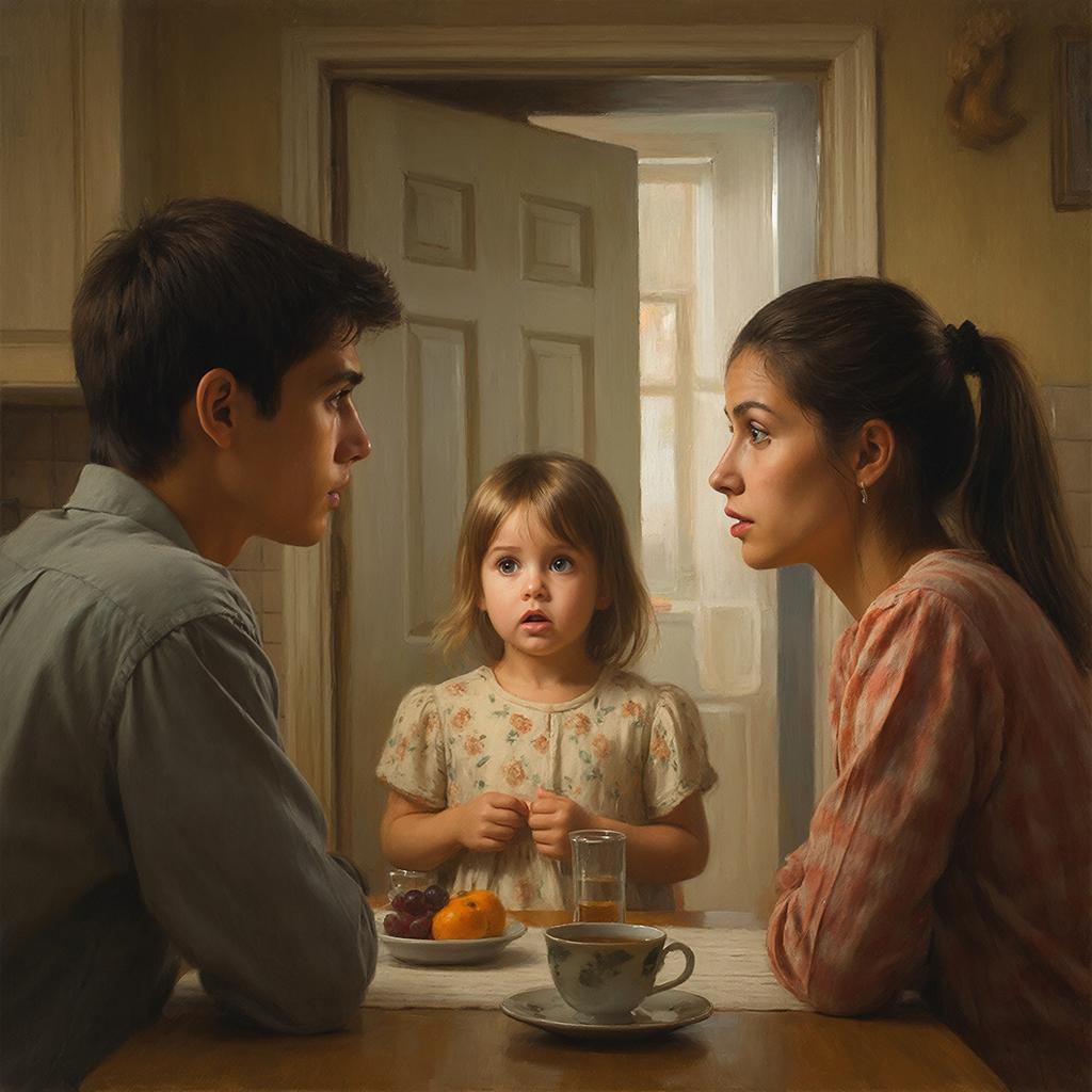 Я замираю и вижу, как глаза у Володи, только что теплые и влюбленные, расширяются до предела. Он застывает с одним ботинком в руке, смотрит на девочку, не моргая, будто увидел призрак. Потом медленно, с трудом переводит изумленный, почти испуганный взгляд на меня. В его молчании – целая буря немых вопросов.