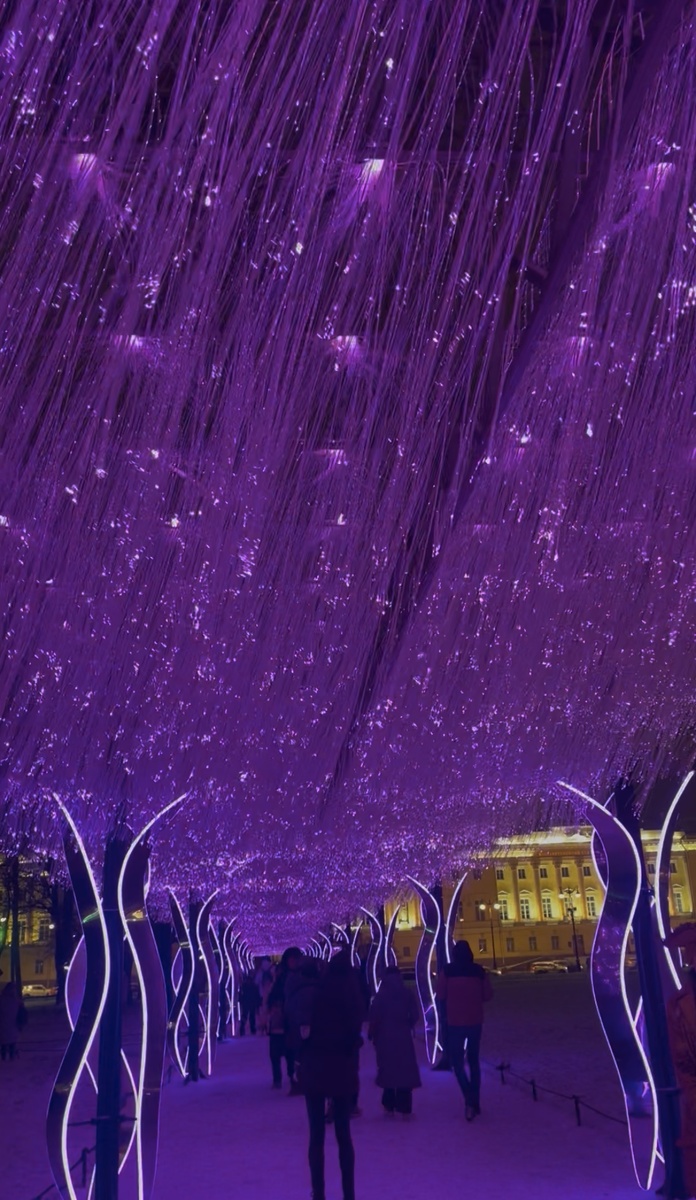 Петербург продолжает удивлять: на фоне классической архитектуры появился объект из другой реальности. Зеркальные лепестки отражают огни города, создавая бесконечное пространство света. Прогулка здесь превращается в маленькое путешествие по галактике.