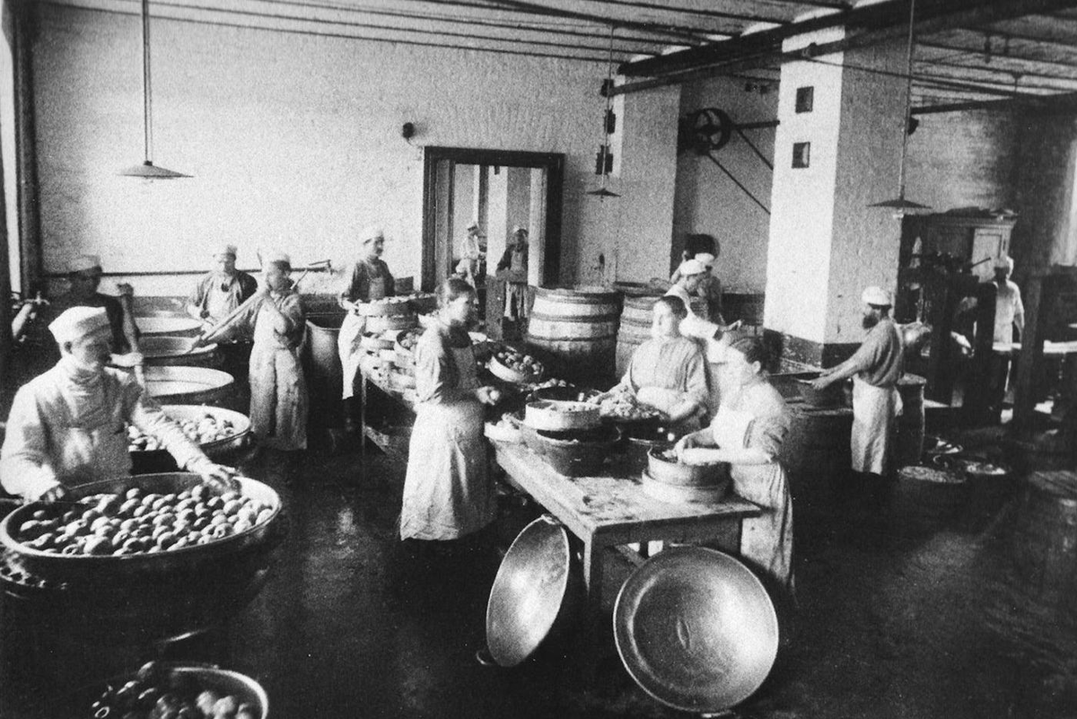 - Скидки и питание. Обед на фабрике стоил копейки, порции были огромными. Плюс рабочие могли покупать продукцию фабрики с дисконтом (представьте, какой запах стоял в цехах!).