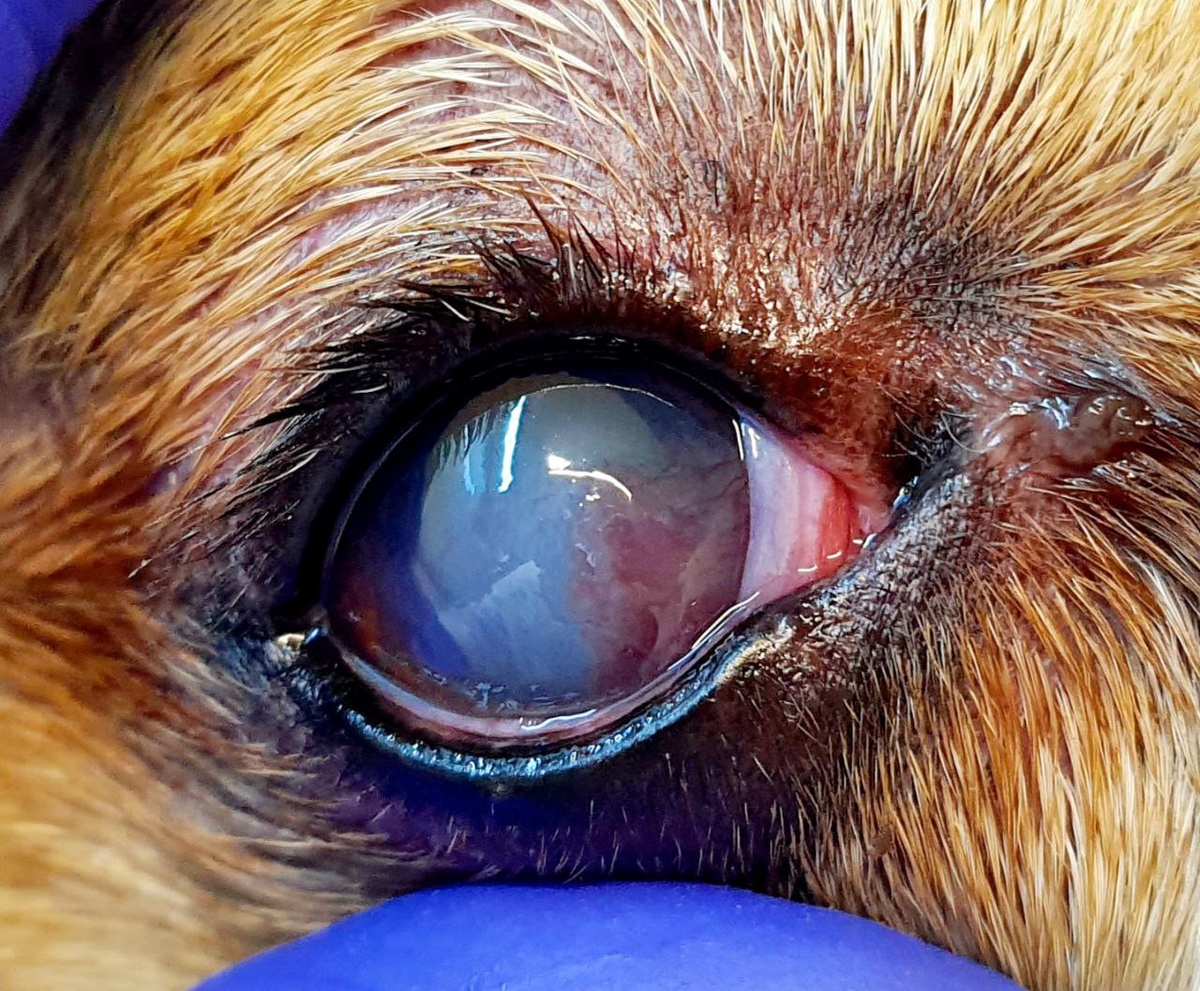 Посттравматический разлитой кератит с сильной сосудистой реакцией во внутреннем углу правого глаза. Прогноз осторожный.