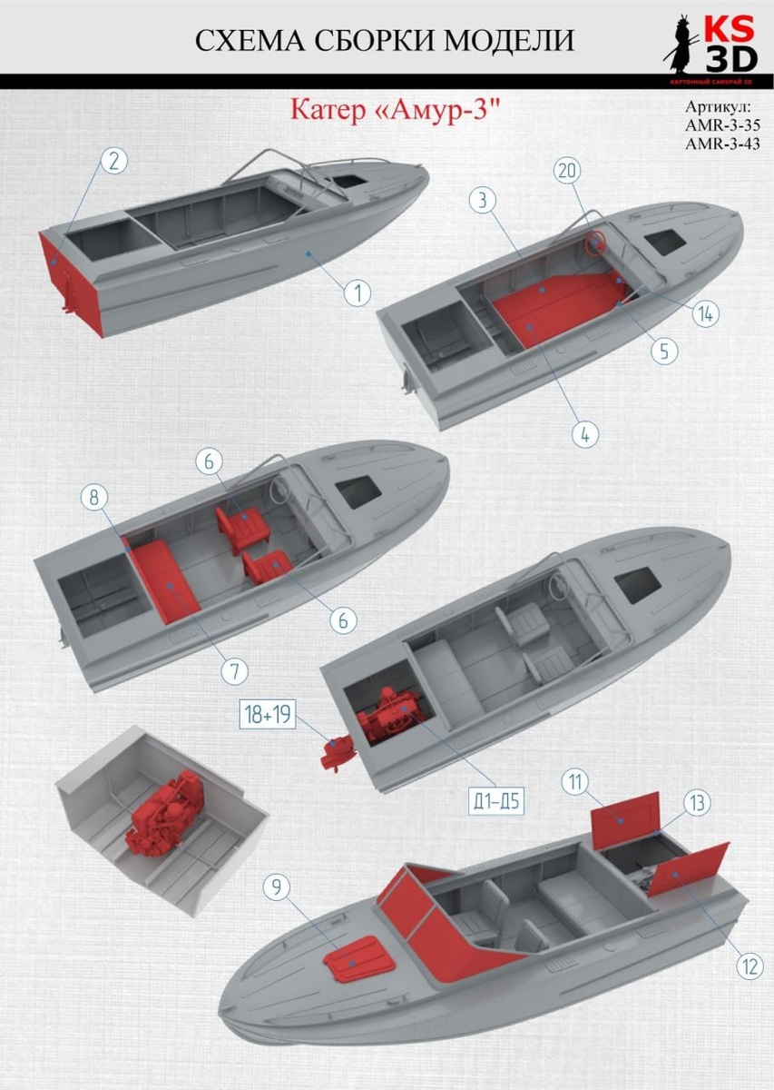 "Картонный самурай" показали схему сборки модели катера "Амур-3" в 1/35 и 1/43 масштабах