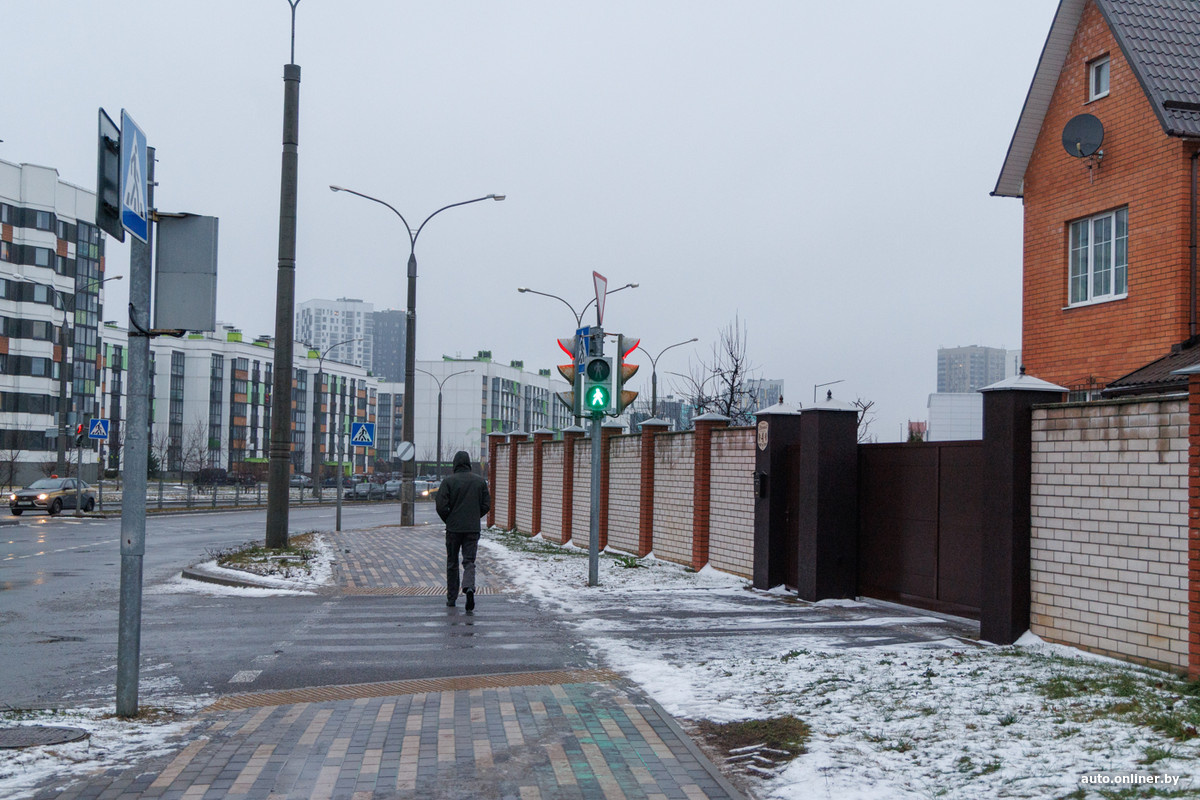 Во время недавнего «Разбора с Красновым» внимание к себе привлек светофор, который расположен на въезде в «Новую Боровую», фактически на границе с Минском. Его особенность в том, что, по сути, это индивидуальный светофор: он добросовестно светит в стену домовладения и с той стороны регулирует движение только того транспорта, который выезжает из этих ворот время от времени. Впрочем, хоть загруженность выезда крайне низкая, с соблюдением ПДД здесь все непросто. Напомним: речь о перекрестке улиц Авиационной и Леонардо да Винчи. На всех картах он выглядит как бы классическим Т-образным перекрестком. Но дело в том, что по длинной его стороне есть въезд в домовладение: 8 метров асфальта и въездные ворота на участок. Но эти 8 метров асфальта выводят аккурат на перекресток двух больших дорог. И перекресток становится пусть не пропорциональным, но и не Т-образным — направления-то четыре. Короче, работает светофорный объект, и светофоры (основные и дублирующие), как полагается, установлены на вс