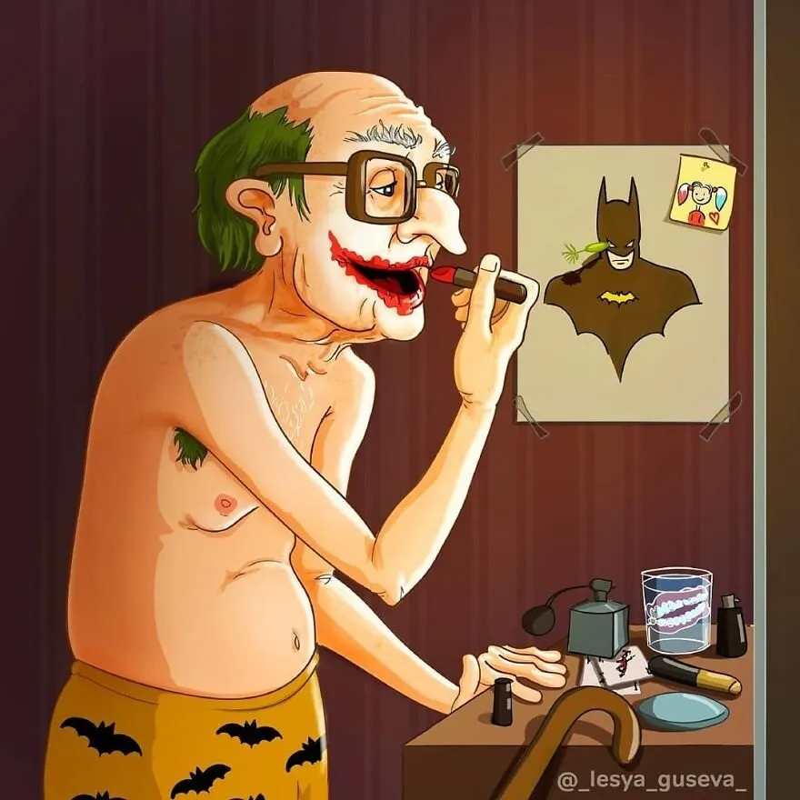 Художница из России в своих иллюстрациях показала, что станет с супергероями, когда те выйдут на пенсию