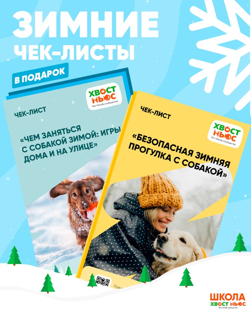 ! ▫️▫️ - это не только снег и холод, но и отличное время для активных игр с питомцем. Но чтобы зимой было и весело, и безопасно, важно знать, чем можно заняться с собакой дома и на улице, как защитить её от холода и вредных реагентов. Именно для этого мы подготовили два чек-листа, которые помогут вам сделать зимние дни для вашего хвостика веселыми и безопасными. 🤍 «Чем заняться с собакой зимой: игры дома и на улице» Здесь собраны лучшие зимние игры для собак: от активных прогулок до занятий в зале и дома. Подсказки по дог-френдли местам и как сделать зимние прогулки интересными и для вас, и для вашего питомца. 🤍 «Безопасная зимняя прогулка с собакой» В этом чек-листе мы расскажем, как защитить собаку от холода и реагентов, как приучить её к одежде и, главное, как понять, когда собаке действительно холодно и когда пора возвращаться домой. Получите свои чек-листы и подготовьтесь к зимним приключениям с питомцем! Получить 👈 #ШколаХвостНьюс