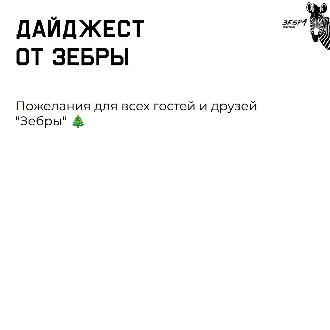 ! Мы желаем вам ярких эмоций, сильных чувств и приятного времени с близкими! Мы остаемся на связи, и плавно переходим в праздничный режим 🫶 Ждите от нас рецептов, танцев, песен, фотографий, конкурсов, шуток и розыгрыша «зебренышей»! Легких приготовлений вам к Новому году! 🎄🎄🎄