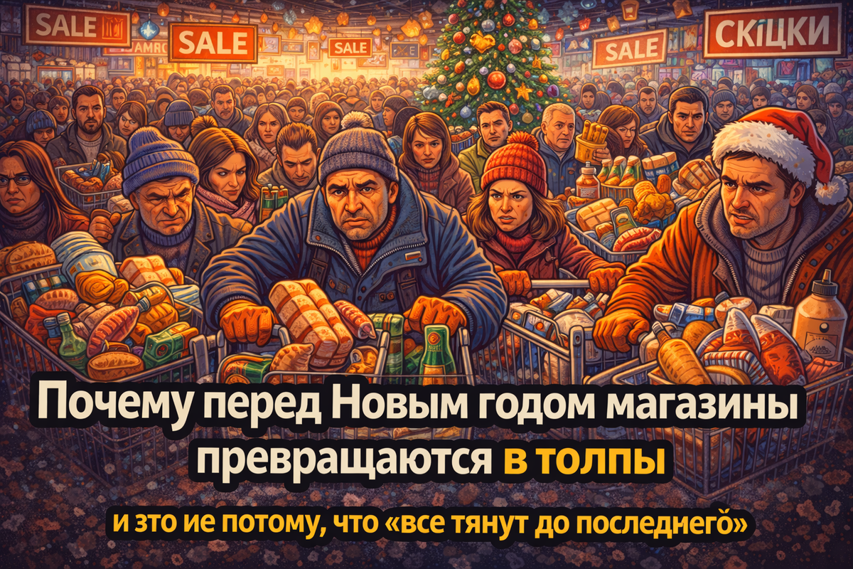 За пару дней до Нового года магазины выглядят так, будто продукты больше не будут продавать никогда. Тележки забиты, очереди тянутся, люди раздражённые. И каждый раз звучит знакомое объяснение: