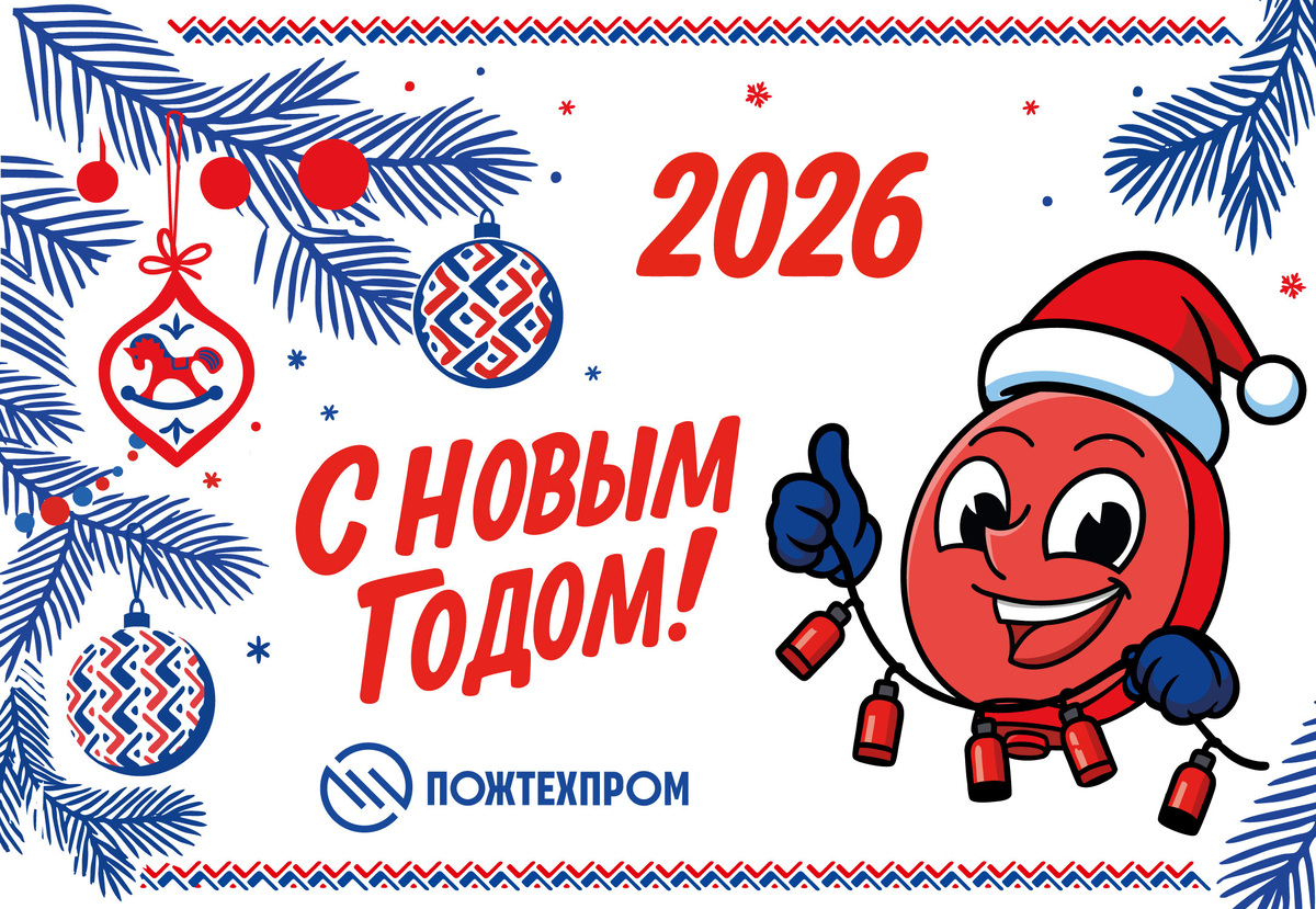 Компания ПОЖТЕХПРОМ поздравляет вас с наступающим Новым годом! Пусть 2026 год станет для вас годом новых возможностей, ярких свершений и уверенных побед!