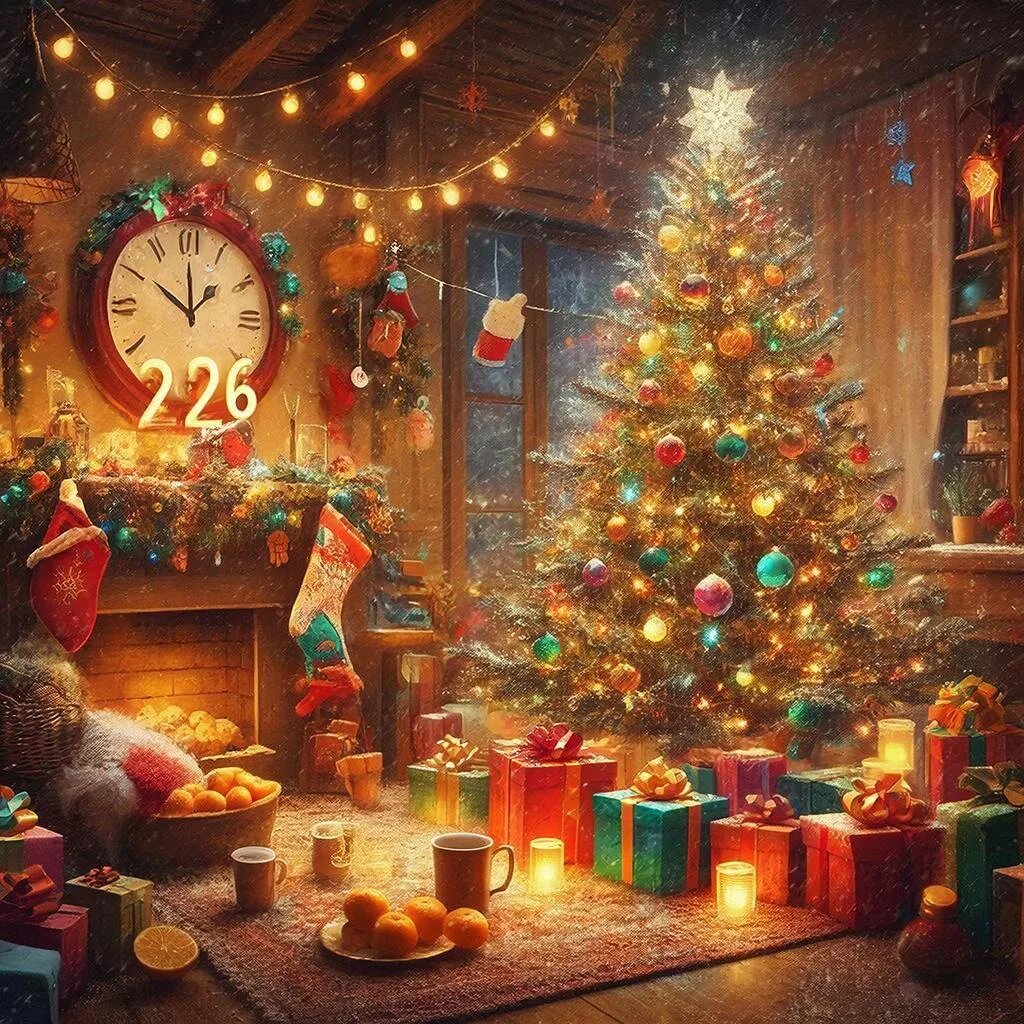 Новый год снова наступит через целых два долгих года 😅 Я недавно подумал, почему бы не начать готовиться заранее к этому замечательному событию, поэтому попросил нашего цифрового помощника по имени Giga Chat создать праздничную новогоднюю открытку для встречи 2026-го года. Однако всё пошло далеко не так гладко, как я ожидал. Когда изображение было готово, первое, что бросилось в глаза – это то, насколько оно оказалось необычным. Вместо того, чтобы написать правильную дату «2026», наш дружелюбный робот изобразил на открытке надпись с годом «2024». Может быть, он просто захотел поиграть с нами или проверяет наше внимание? 😏 Впрочем, дело даже не только в этом. Чтобы окончательно запутать всех, кто увидит картинку, он щедро присыпал её снегом, словно пытаясь убедить каждого из нас, что на дворе уже глубокая зима и совсем скоро праздник вновь постучится в наши двери 🎄❄️. Но несмотря ни на что, хочется поблагодарить тебя, Giga Chat, за твоё творческое видение и умение поднять настроение