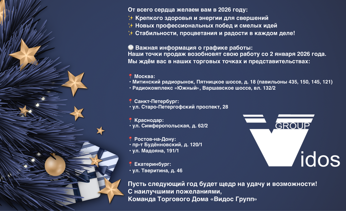 Наши точки продаж возобновят свою работу со 2 января 2026 года. Мы ждём вас в наших торговых точках и представительствах: 📍 Москва: 📍 Санкт-Петербург: 📍 Краснодар: 📍 Ростов-на-Дону: 📍 Екатеринбург: Пусть следующий год будет щедр на удачу и возможности! С наилучшими пожеланиями,
