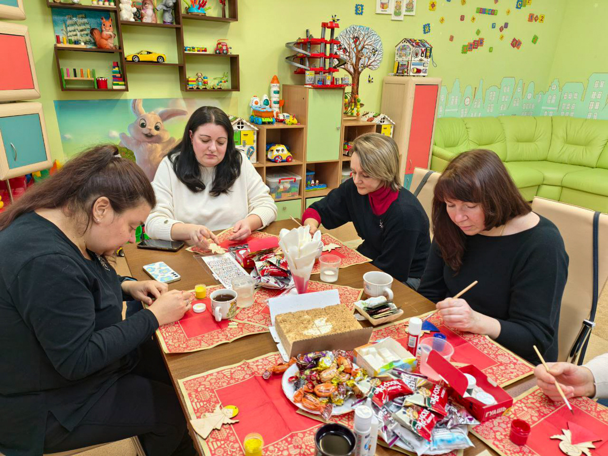 В преддверии Нового года — времени чудес, надежды и тихого волшебства — педагоги особого семейного центра «Роза ветров» организовали мастер-класс для родителей детей с особыми потребностями. Целью встречи было не только создание прекрасных новогодних украшений, а укрепление эмоциональной связи, обмен опытом и создание поддерживающего сообщества. В этот раз педагоги решили немного отойти от традиционного формата и дать родителям пространство только для себя, чтобы они могли расслабиться, раскрыть свой творческий потенциал и наполниться ресурсом для дальнейшей работы с детьми. Объектом творчества стали ангелочки – символы надежды, добра и любви.
