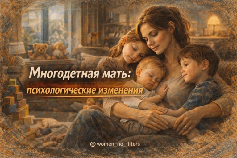 Ты встречаешь женщину, она становится матерью, и ты думаешь, что ничего не изменится. Но вот она становится многодетной матерью, и всё меняется. Не только её тело, не только её график, но и её психология, её восприятие жизни. Что происходит с женщиной, когда она становится многодетной матерью? Как её восприятие меняется? И как это влияет на её отношения? Многодетная мать переживает серьёзные психологические изменения. Она становится всецело посвящённой своей семье, её приоритеты меняются. То, что раньше было её собственным временем и вниманием, теперь уходит на детей. Сначала тебе будет казаться, что она не так открыта, не так эмоциональна. Ты будешь чувствовать, что её внимание всё больше и больше уходит от тебя. Но это не утрата интереса, это перераспределение сил. Она будет сосредоточена на детях, на их воспитании, безопасности и развитии. Она будет меньше уделять внимания себе, своему внешнему виду, и ты не будешь её видеть такой, как прежде. Ты будешь чувствовать её более замкнуто