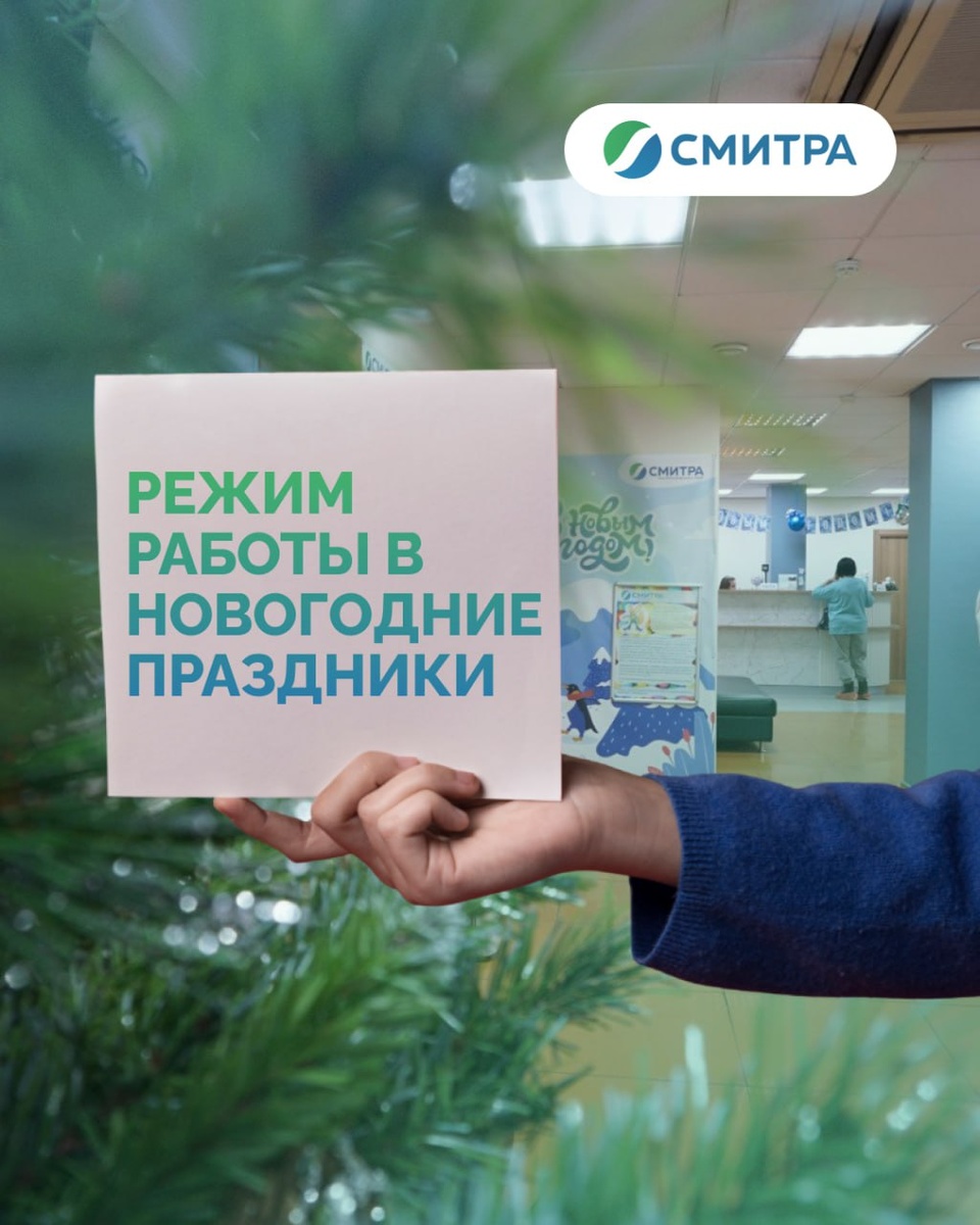 ? 🎄⏰ Хотели пройти обследование, но всё откладывали? Замечаете, что близкому давно нужен приём врача, но в будни не хватает времени? Новогодние каникулы — редкий момент, когда можно выдохнуть, никуда не спешить и спокойно заняться тем, что действительно важно. В эти праздничные дни клиника «СМИТРА» продолжает работать по специальному графику, чтобы вы могли: — пройти профилактический осмотр; — обратиться к врачу без спешки и очередей; — помочь близким позаботиться о здоровье. Актуальный график работы в праздничные дни — в карточках. 📞 +7 (383) 209-05-33 Будьте здоровы 🩵