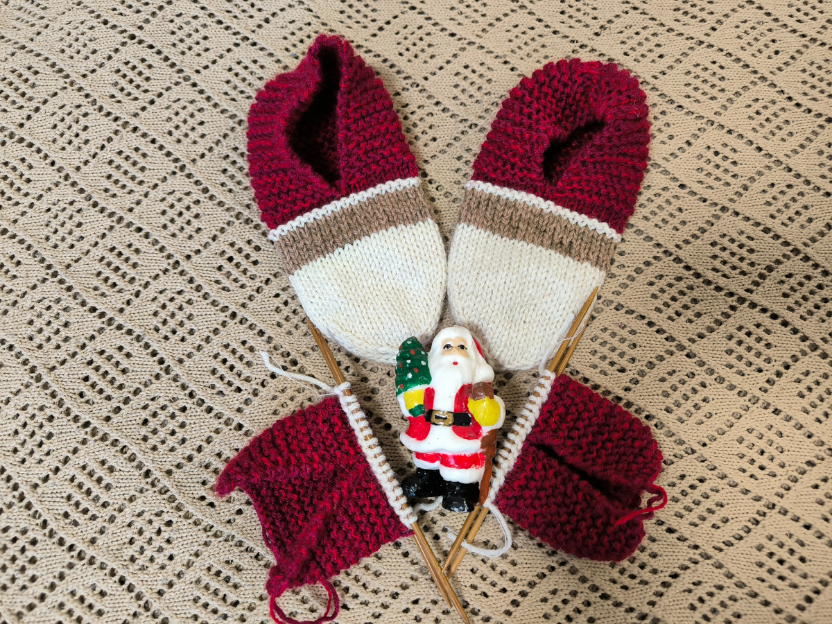 Конец декабря , хочется ещё связать небольшие сюрпризы следочки и украсить их в новогодней тематике.