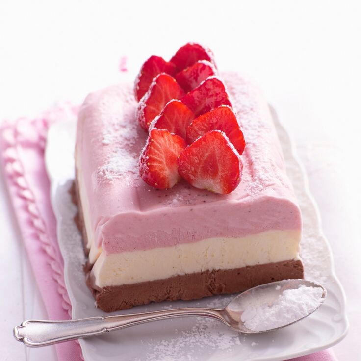Перед подачей на стол ненадолго опустить форму в теплую воду и осторожно перевернуть торт-мороженое на блюдо.