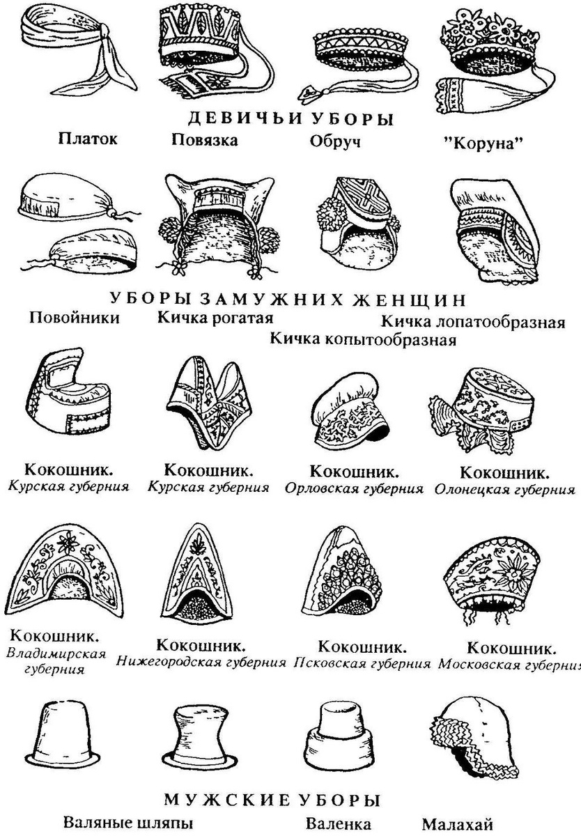 Существует в научной сфере, а раньше и в народе,очень четкая граница- Девичий головной убор оставляет открытым затылок, а женский предусматривает шапочку, косынку скрывающие волосы. В современном мире, есть очень устойчивы термин Кокошник, для обозначения ЛЮБЫХ головных уборов. От большого убора Снегурочки, до маленького ободка. Так сложилось. ПОЧЕМУ, ОТКУДА пошла это чехорда в терминологии - ОТ РУССКОЙ КОРМИЛИЦЫ. Богатые, знатные дамы, сами не кормили своих детей. Нет, они деток любили, но статус, традиции и особенность покроя Европейского платья - с корсетом, не позволяли им реализовать свое предназначения матери, вскормить дитя. Нанимали кормилицу, выдавали "форму". Вероятно униформа кормилицы , русский стилизованный костюм появился при царе Николае 1. Он любил все стандартизировать и регламентировать. Облачение российских кормилиц в XIX в. являлось женским, великорусским крестьянским костюмом (сарафанным комплексом). Состоявшем из белой рубахи с пышными рукавами, праздничног