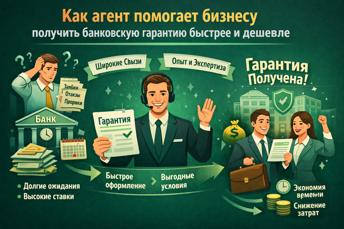 Для участия в тендерах или заключения контрактов часто требуется банковская гарантия. На первый взгляд — достаточно обратиться в банк. Но на практике это может занять недели и потребовать массу документов. Именно здесь бизнесу помогает агент по банковским гарантиям.