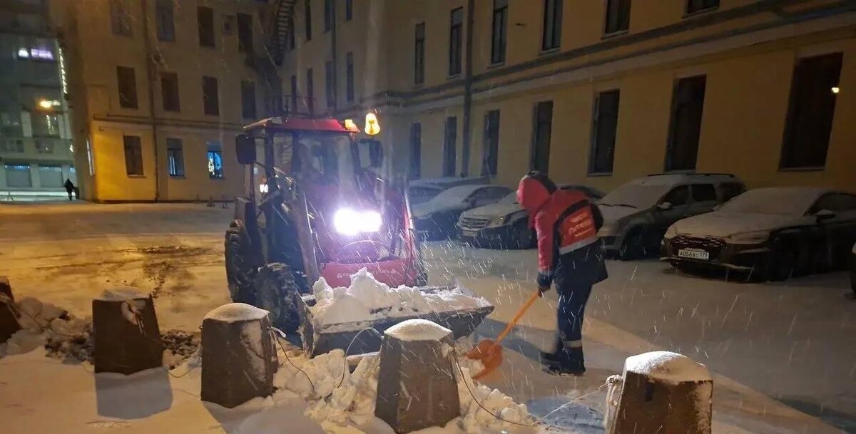 На улицы Петербурга вышли сотни единиц техники для уборки снега в выходные