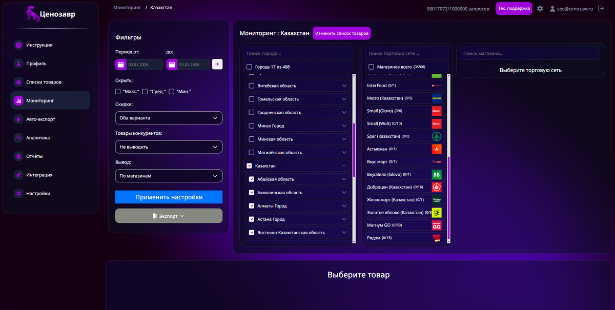 Новые торговые сети и города в сервисе «Ценозавр»